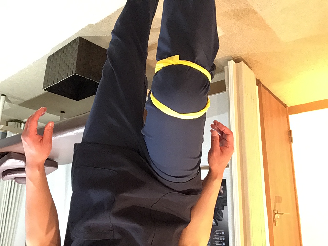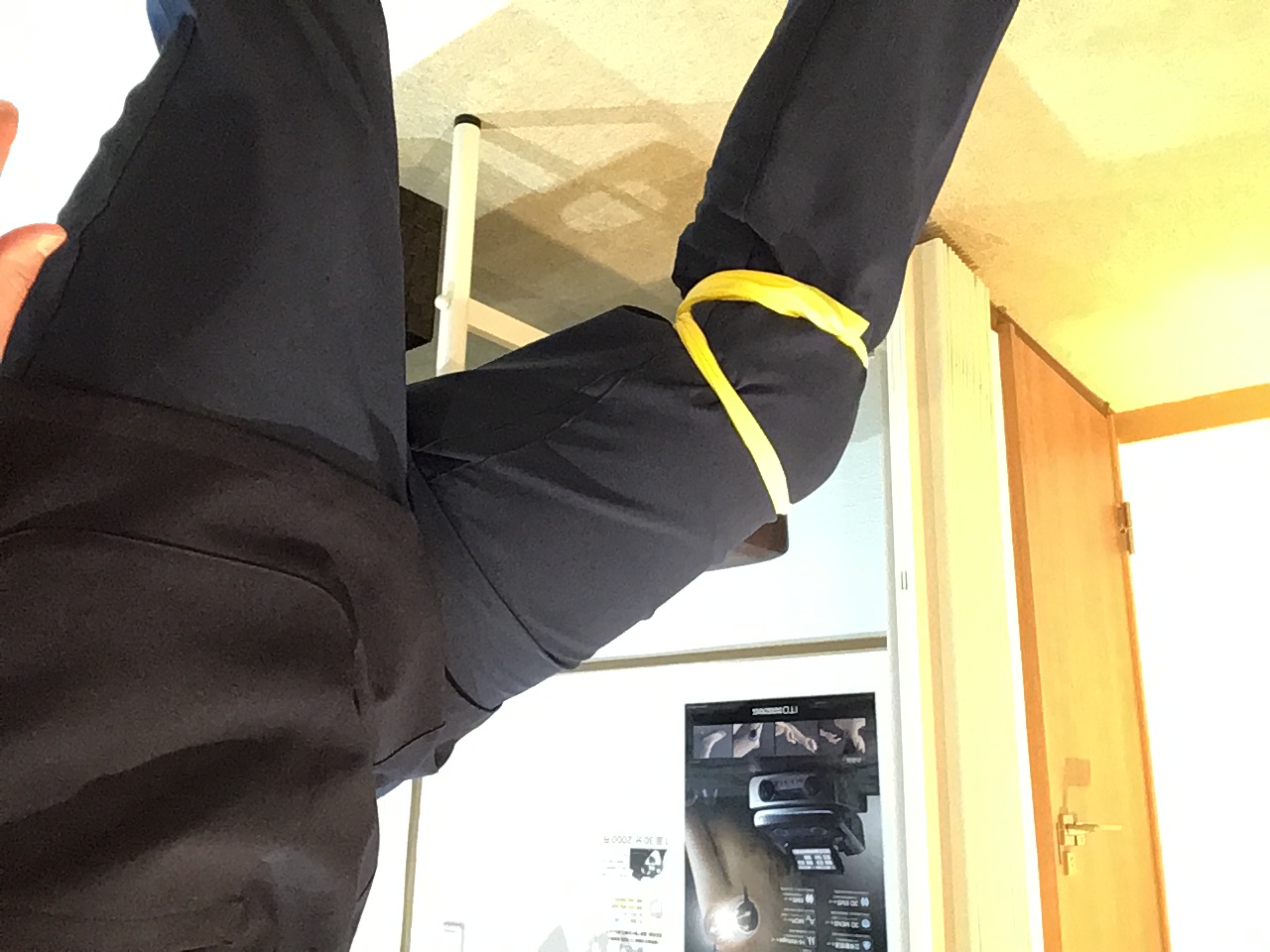 3. その状態のまま足首を固定し、足を奥へゆっくりと押して5秒、手前に倒して5秒それぞれキープします。